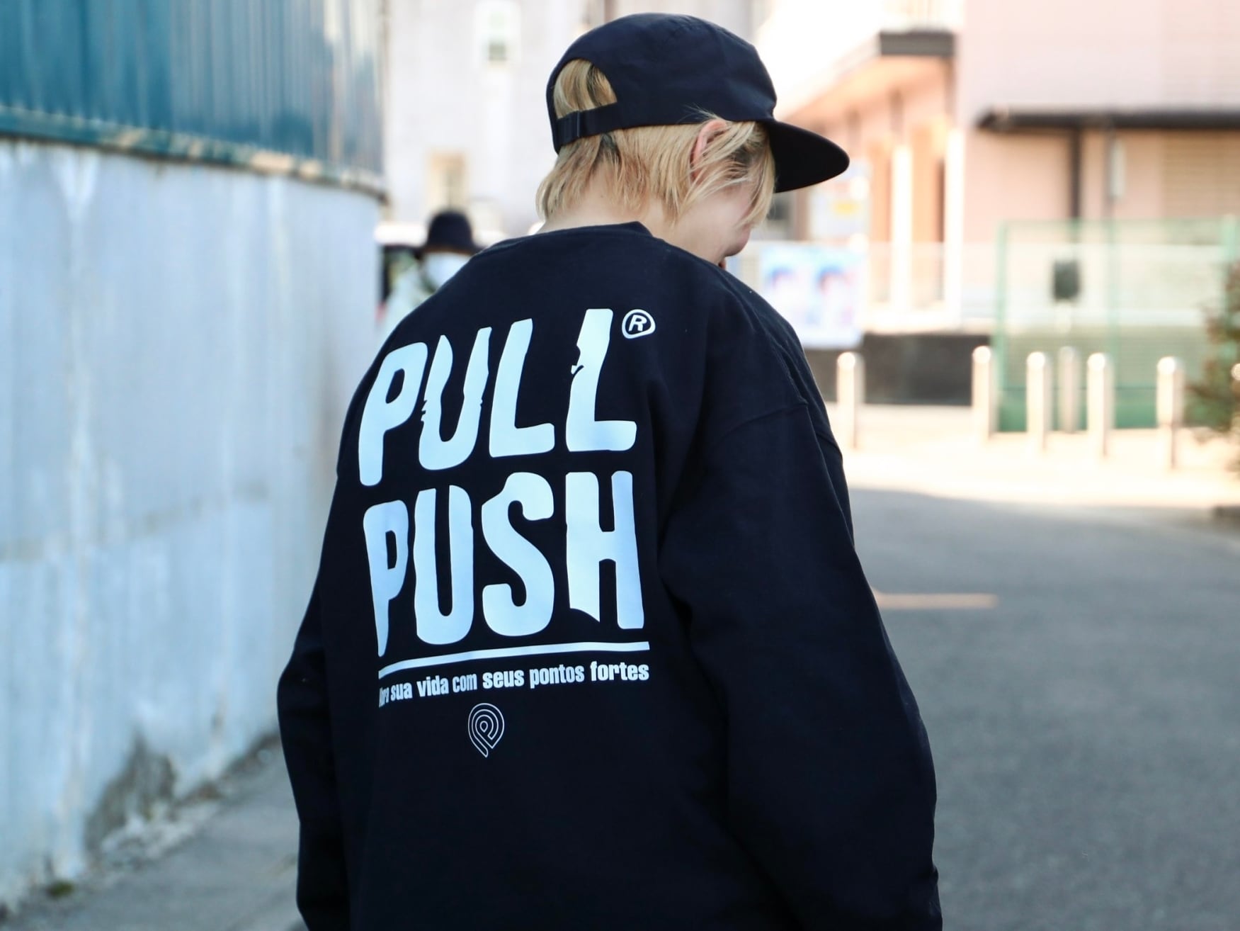 フロントにはPPロゴ、バックにはPULLPUSHのビッグプリントが入った、U.Sコットン特有のざらつき感が特徴的なオーセンティックな袖口リブ付きのヘヴィーウェイトロンTです。